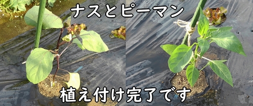 ナスとピーマンの苗の植え方(千両二号ナスと京波ピーマンの植え付け)